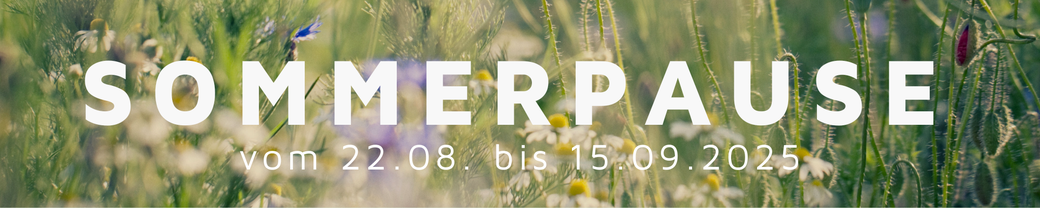 Die Praxis macht Ferien und bleibt vom 22. August bis 15. September 2025 geschlossen. Ich wünsche meinen Kundinnen und Kunden schöne Spätsommertage und freue mich, sie ab dem 16. September wieder in der Aroma Oase begrüssen zu dürfen.